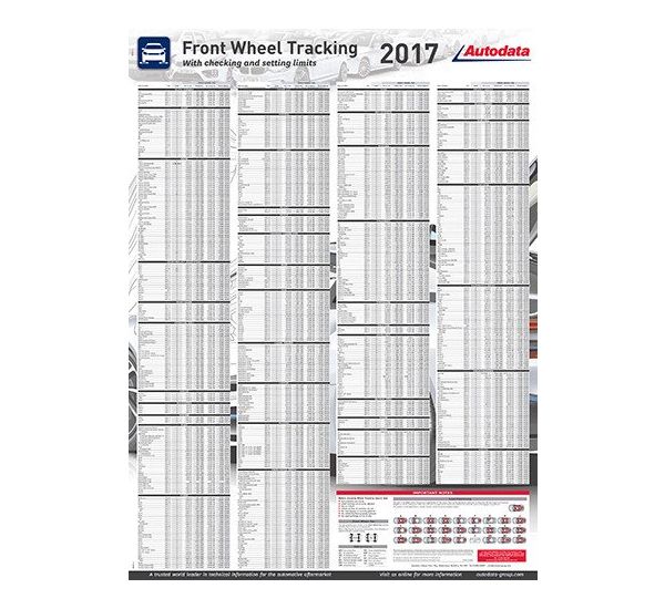 • Our Front Wheel Tracking wall chart includes checking and setting limits and is 740 mm x 1000 mm in size andlaminated for durability.