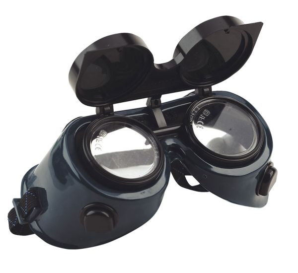 * Clear polycarbonate safety lenses with shade 5 flip-up lenses.