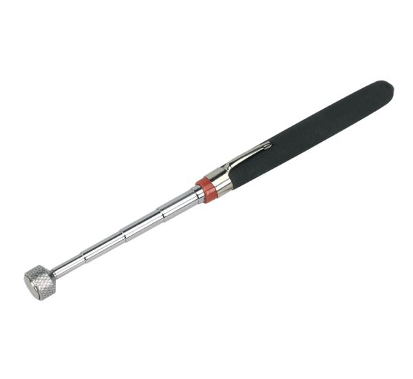 * Heavy-duty five section magnetic pick-up tool with textured handle for added grip plus pocket clip.