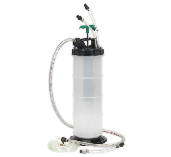 - 8ltr Capacity device constructed from composite materials. • Suitable for the extraction of all types of engine, transmission and lubricating oils from vehicles and machinery. • Also suitable for the extraction of petrol/diesel and low viscosity fluids such as water. • Supplied with 1.5mtr main hose, with interchangeable Ø6.7 x 700mm dipstick oil probe and Ø7 x 400mm universal fluid probe. • Supplied with 240mm fuel system adaptor (FSA) for use in conjunction with fuel kit Model No's VS552, VS553, VS554 and VS555 • Can also be used for draining fish tanks, basins and sinks. Model No: TP204 Capacity: 8ltr Dipstick Probe: Ø6.7 x 700mm Universal Probe: Ø7 x 400mm FSA Pipe: 240mm