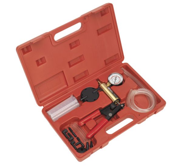 • Contents: Vacuum Pump, Fluid Container, Transfer Cap, Vacuum Hoses; 2 x 560mm, 4 x 80mm, 5 x Assorted Vacuum Hose Fittings, 3 x Bleed Nipple Adaptors.