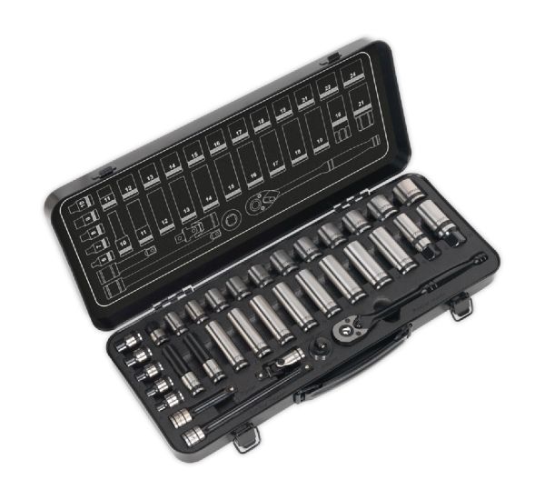 Sockets & Bit Sockets - Socket Set 34pc 3/8"Sq Drive 6pt WallDrs