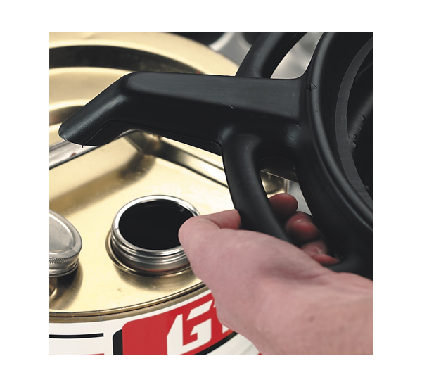 • Large handles and enclosed pouring spout aid return of oil/fluid to recycling container.
