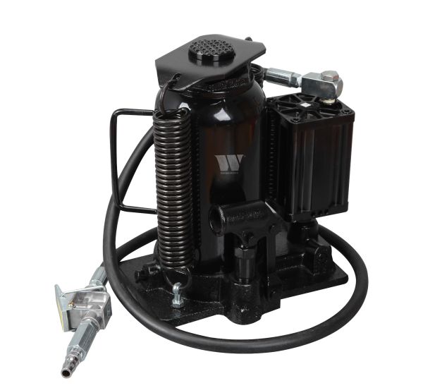 - Heavy Duty Air Hydraulic Jack: Designed for operating either manually or pneumatically. High Quality & Heavy Duty: Heavy-duty steel construction meets ANSI standards. Long & Flexible Hose: Air hose can swivel in any direction. Over loading Prevention: Fitted with safety valve to prevent overloading. Easily Pumps & Extends: Two-piece handle allows for easy pumping. Extension screw gives added height when necessary. Other Specifications: Air pressure: 0.75 to 0.85mpa 20 ton lifting capacity. Double spring return. Min. height: 267mm Max. height: 515mm