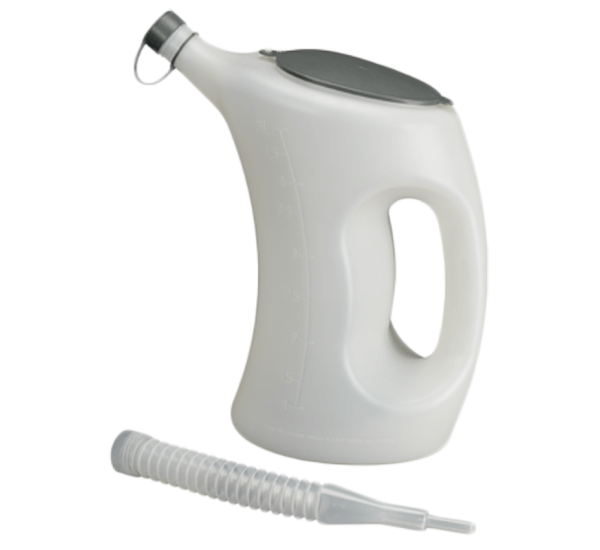 High-density polyethylene (HDPE) with protecting cover and discharge spout end-cap.