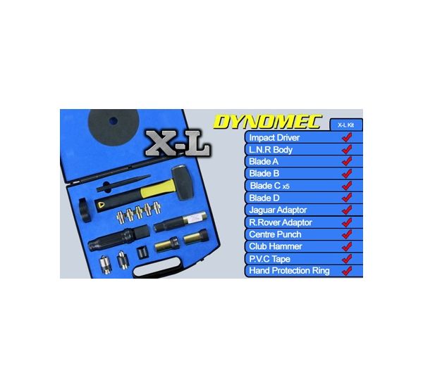 - Kit contents: Impact Driver, LNR Body, Blade A, Blade B, Blade C x5, Blade D, Jaguar Adaptor, Range Rover Adaptor, Centre Punch, Club Hammer, PVC Tape, Hand Protection Ring.