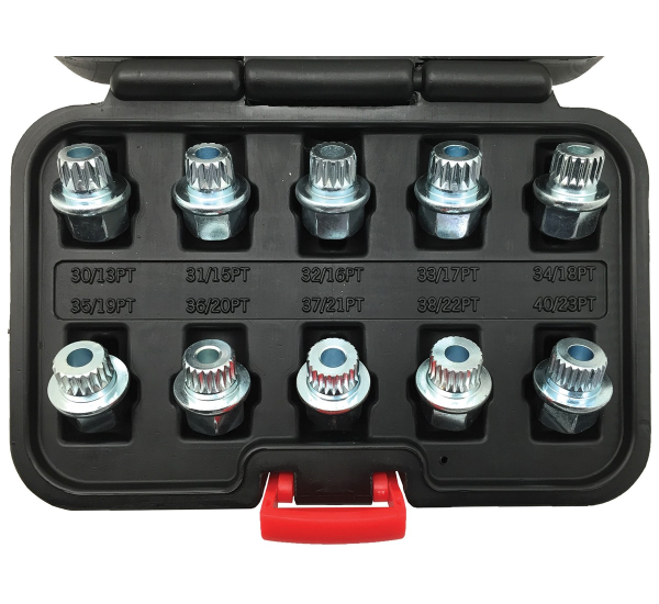 • Contains 10 locking nut sockets. Suits BMW/Mini. Supplied in storage case.